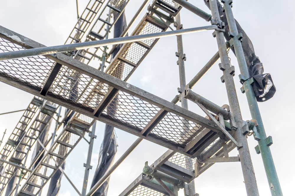 外壁工事には足場工事→防水工事→シーリング工事→塗装工事がございます。